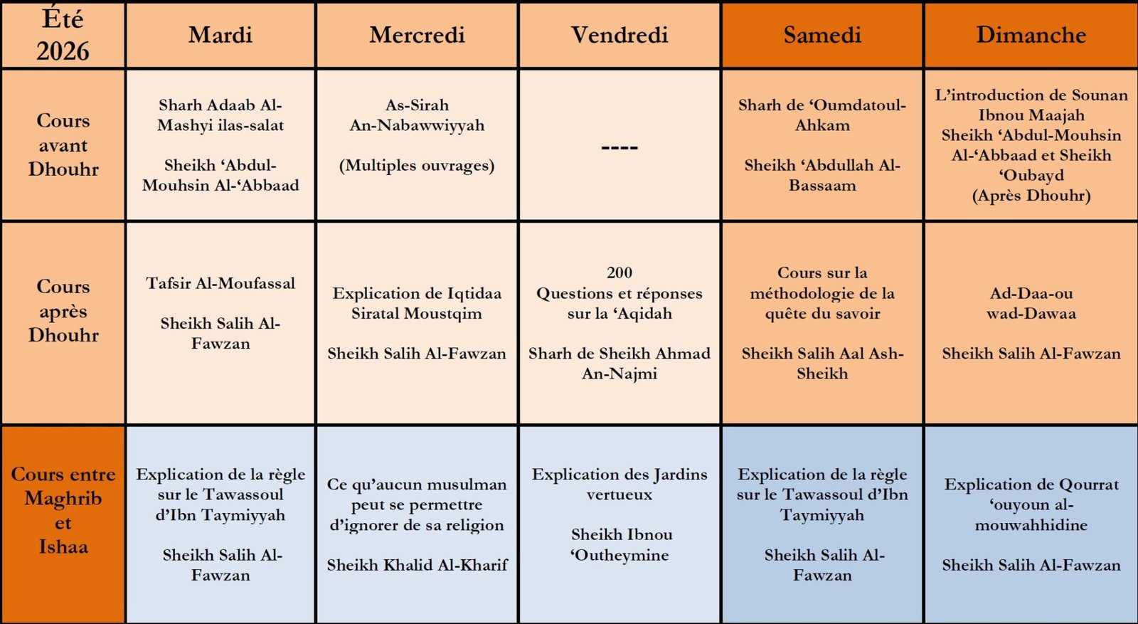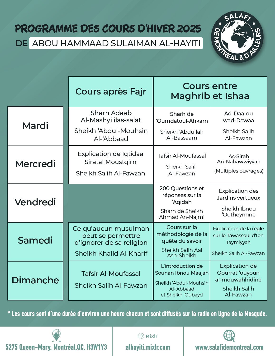 Le planning des cours live